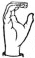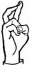 На ћирилици написано ВУКОСАВ БЕКРИЋ састоји се из 13 слова [?]. Исписано ћириличном једноручном азбуком за глувонеме: